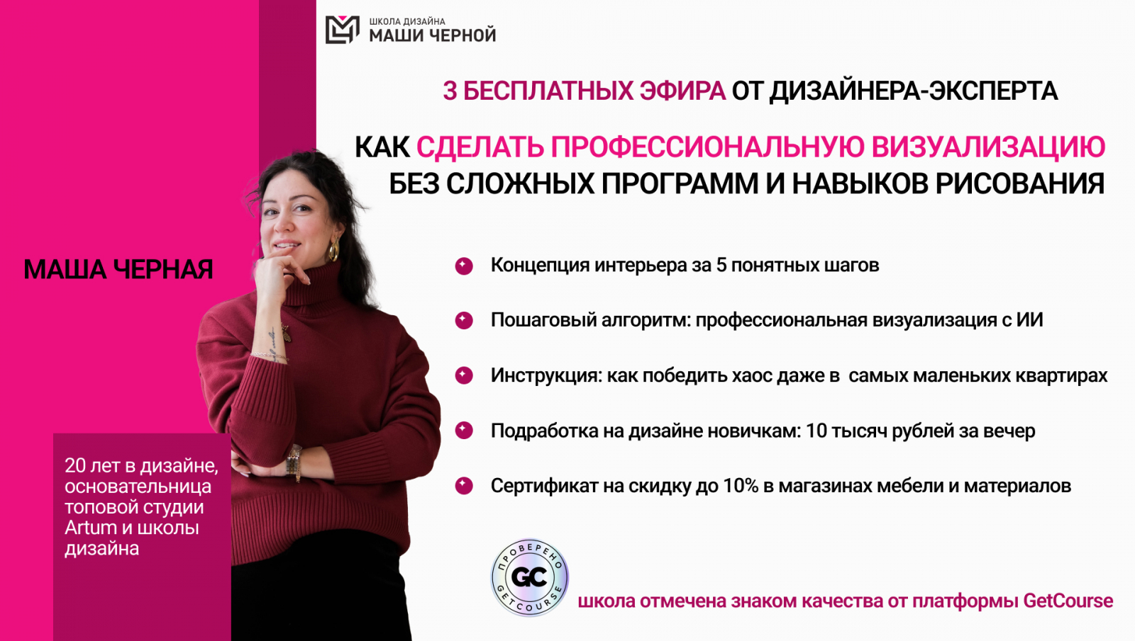 Хотите научиться продумывать удобные планировки и создавать крутые визуализации, которые помогут увидеть будущий интерьер до ремонта — регистрируйтесь на 3-дневный онлайн-курс владелицы студии Маши Черной: