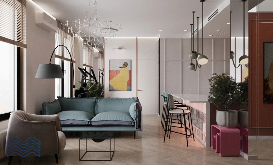 ✔️ Комплектация квартиры: материалы, мебель, освещение — закупка и доставка на студии, клиенту не нужно бегать по магазинам.