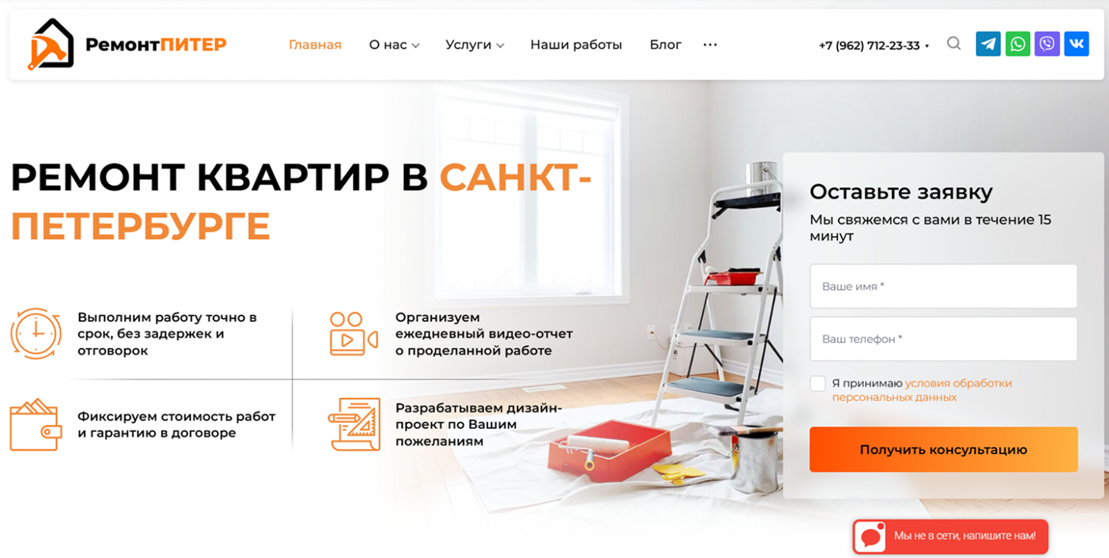 ✅ Удалённый ремонт — можно вести объект в СПб, даже если вы находитесь в другом городе или стране, с фото- и видеоконтролем.