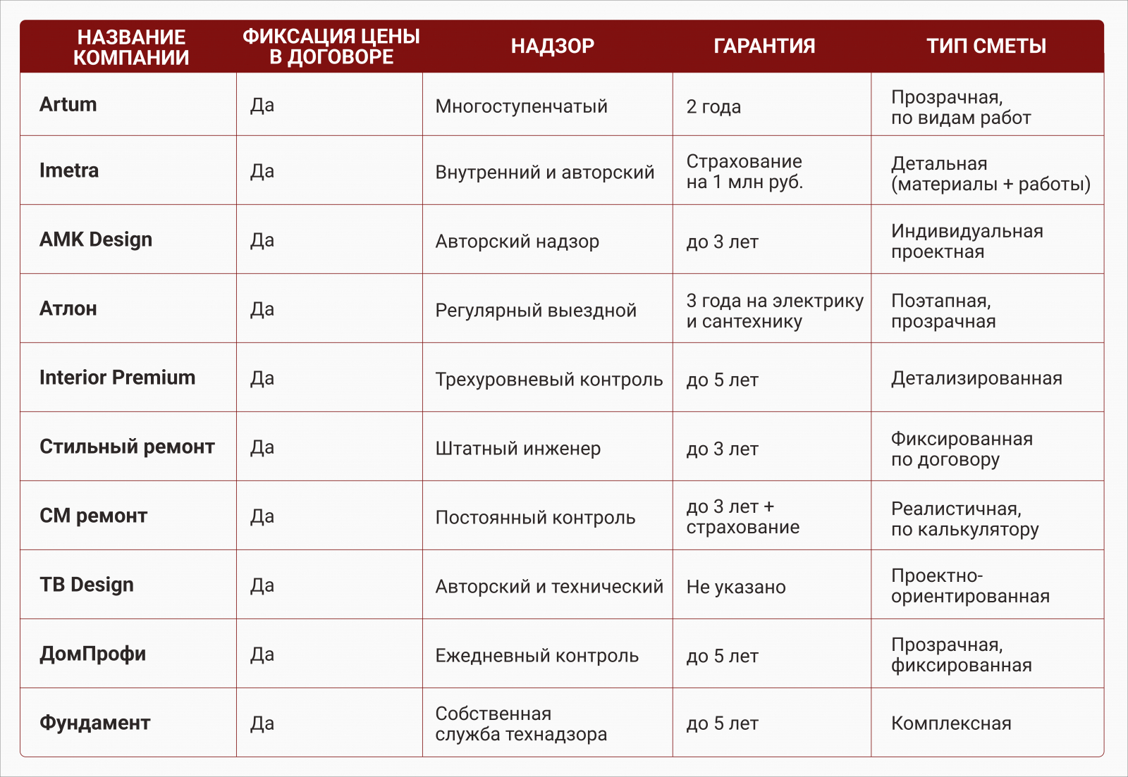 Это позволит быстро сравнить игроков рынка. Мы не просто перечисляем названия, а анализируем бизнес-процессы: от сметы до условий фиксации цены в договоре.