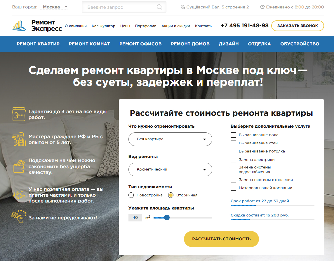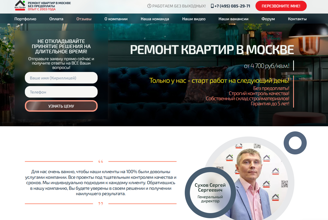 Кому подходит: тем, кто ищет надежного подрядчика с огромным опытом и гибкими финансовыми условиями.