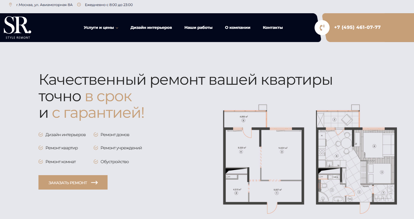 Формат работ: ремонт полного цикла в Москве и Подмосковье. Работают как с новостройками, так и с вторичным жильем, предлагая три уровня сложности: от «Стандарта» до «Премиума».
