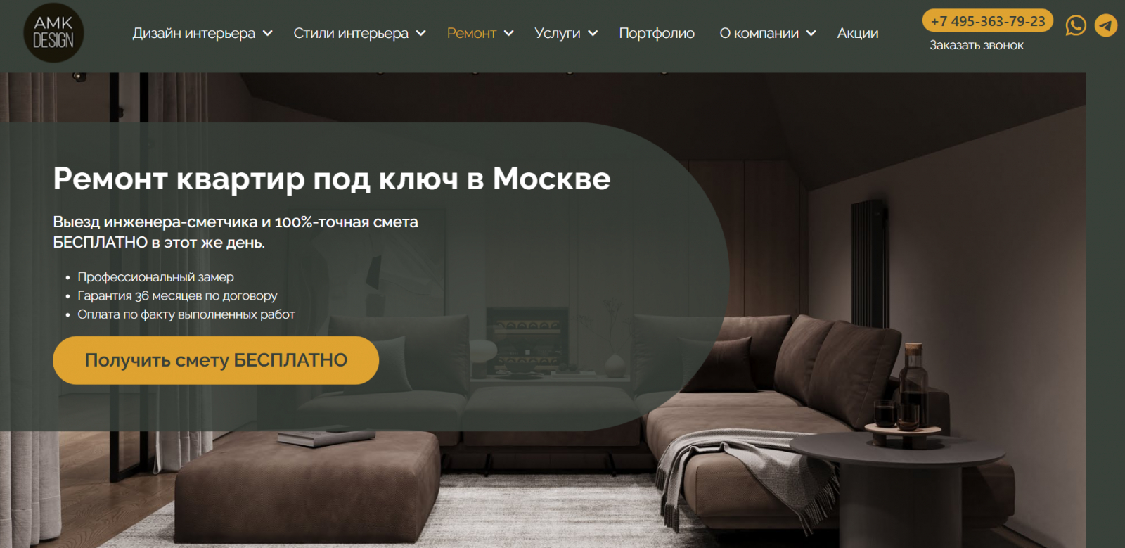 Формат работ: дизайнерский ремонт «под ключ» в Москве и области, специализируются на создании премиальных интерьеров в ЖК бизнес- и элит-класса