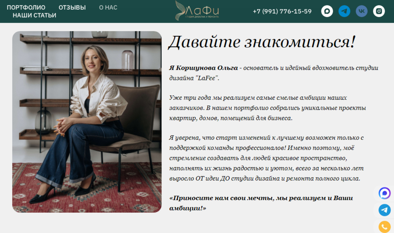 Кому подходит: тем, кто ищет бескомпромиссное воплощение дизайн-проекта «один в один» под надзором автора.