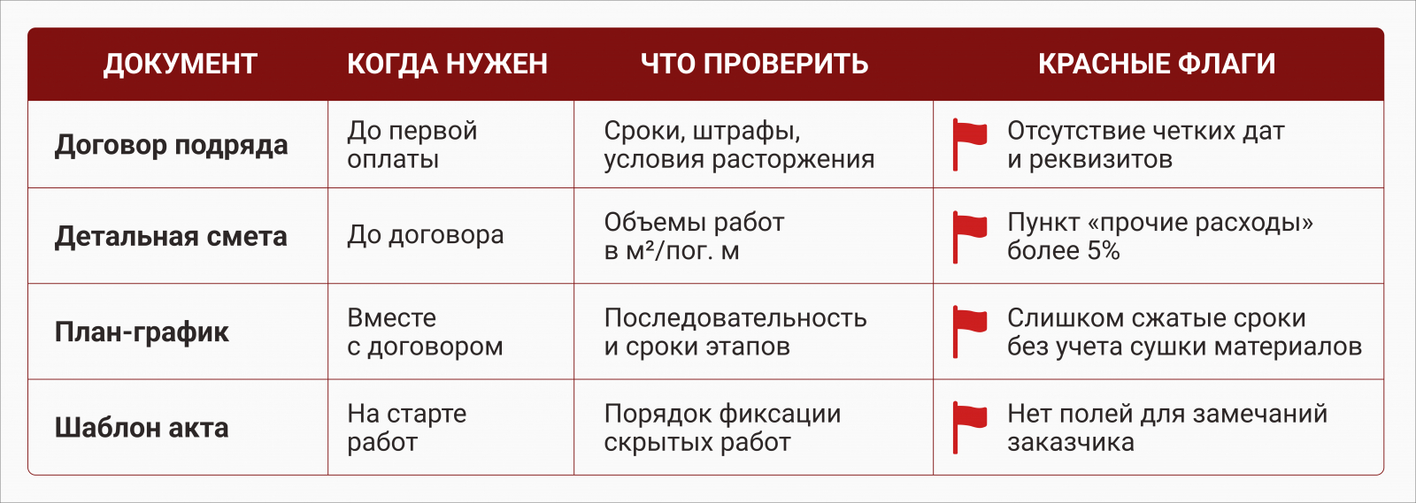 Ниже таблица, которая поможет провести аудит документов до момента подписания договора.