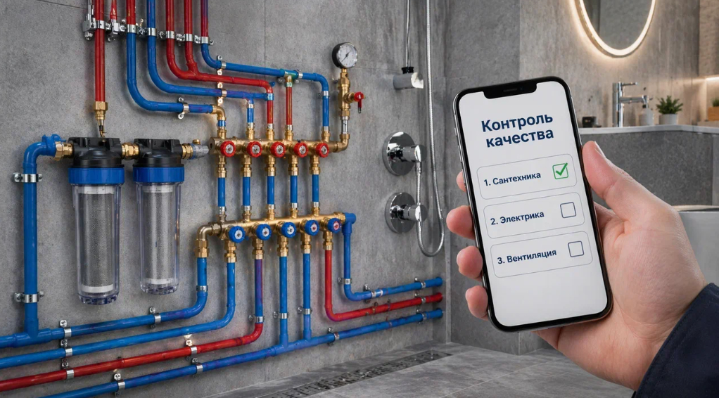 Прежде всего, требуйте детальную фотофиксацию всех труб и проводки до закрытия стен. По электрике важно проверить отсутствие диагональных штроб и наличие защиты кабеля в местах прохода через перегородки. В сантехнике важна опрессовка системы — проверка труб избыточным давлением. Любая работа на объекте должна фиксироваться актом скрытых работ.