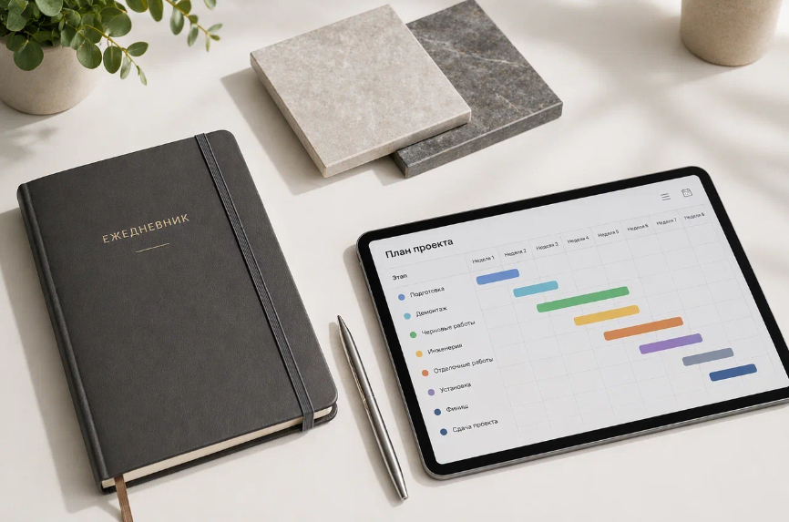 Профессиональная работа невозможна без синхронизации с поставками. Уточните, когда именно нужно заказать чистовой материал, чтобы простой бригады не отразился на бюджете.