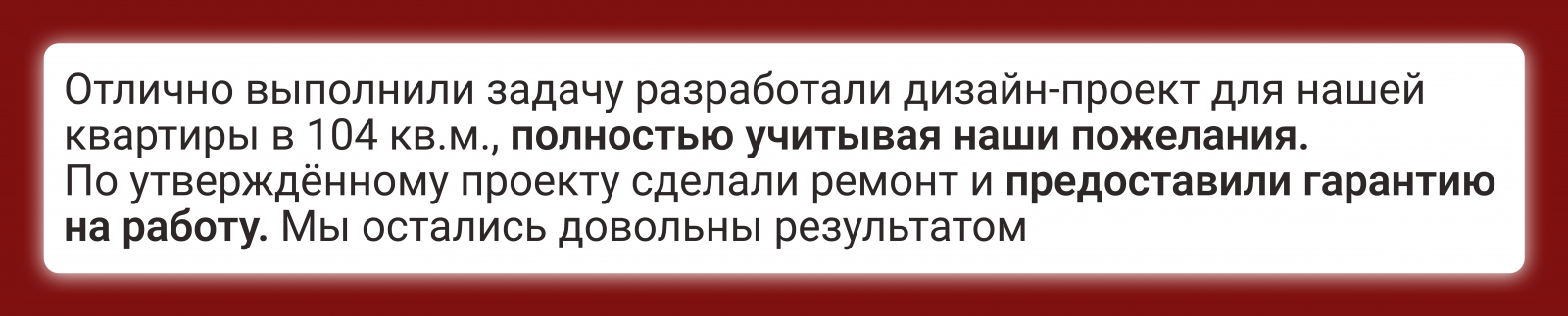 На практике это выглядит так. Если семья с новостройкой приходит в бюро полного цикла (дизайн+ремонт), через полгода они получают готовый интерьер и платят одной компании. Все вопросы по стройке, материалам и срокам решает подрядчик.