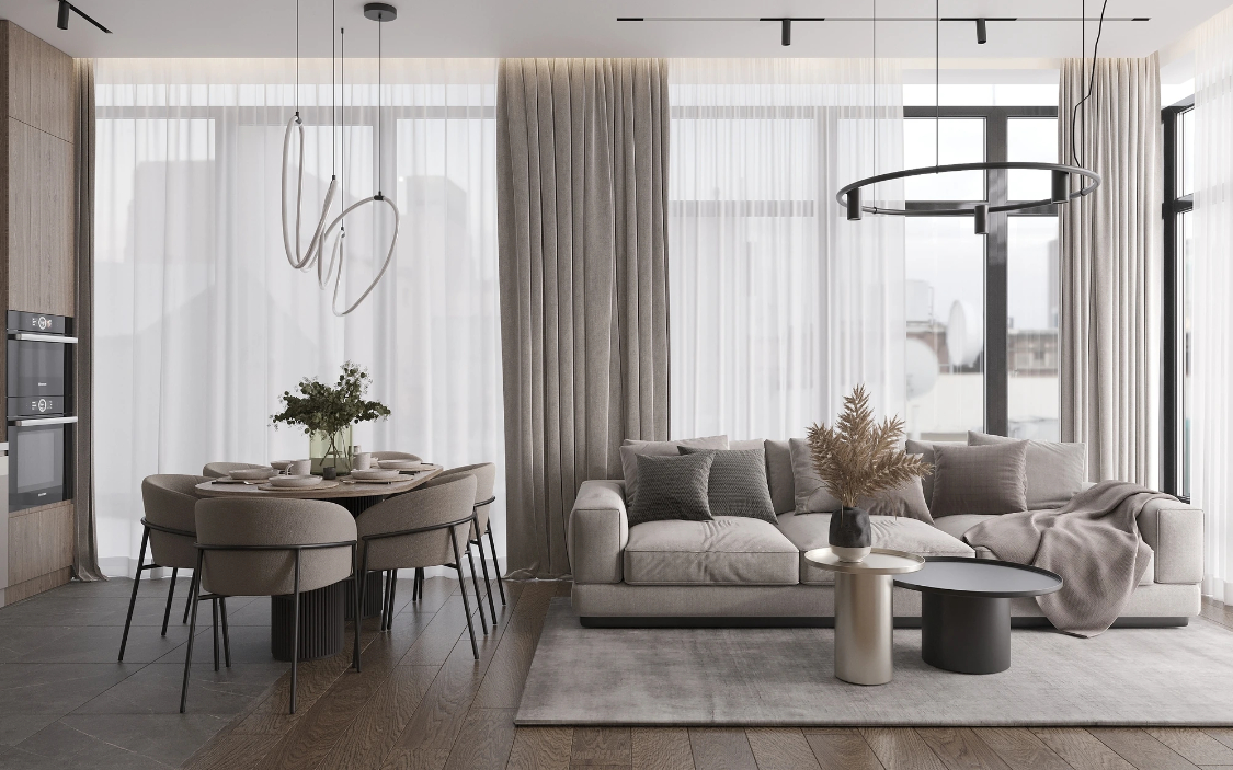 Компания создаёт интерьеры премиум-уровня. В портфолио — проекты для семей с детьми, молодых пар, где дизайн решает конкретные задачи: светлые пространства, зонирование, учет интересов всех жильцов. Работает в разных стилях — от современной классики до минимализма.