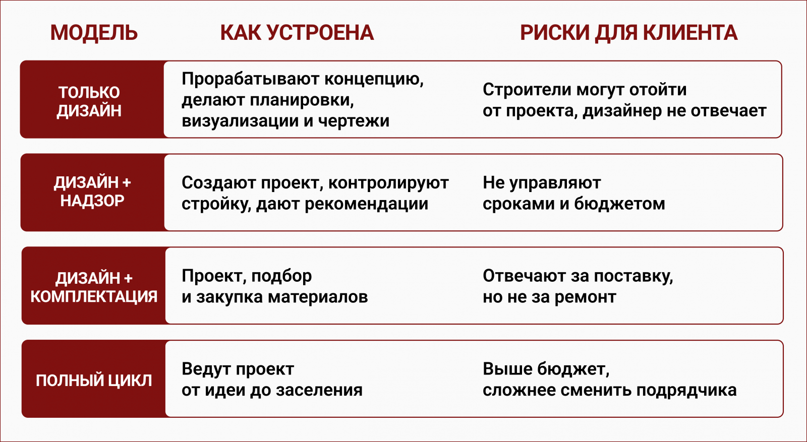Когда ищешь дизайнерское бюро, кажется, что все они делают примерно одно и то же: рисуют картинки, отдают чертежи. Но на деле устроены по-разному, и от этого зависит, сколько вы заплатите, кто будет нести ответственность и какой результат получите.