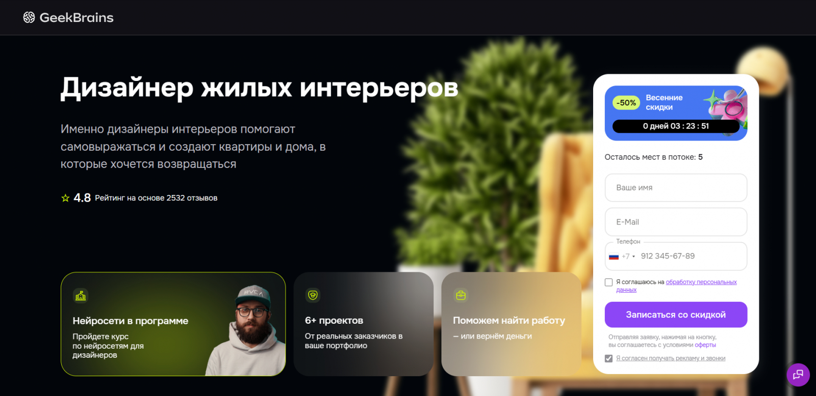 10. Онлайн курс дизайна интерьера — GeekBrains