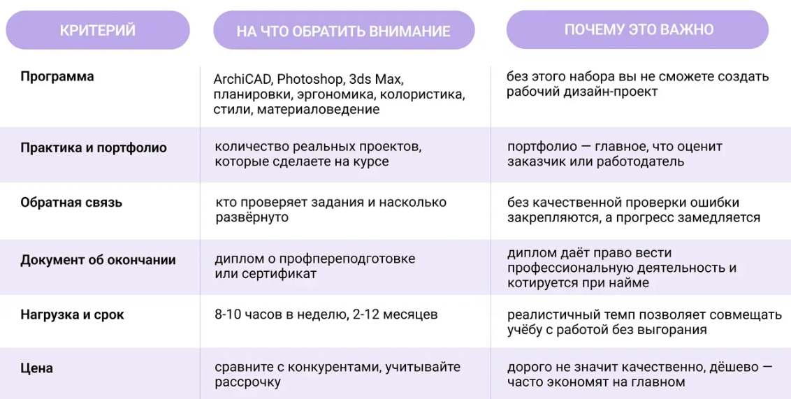 Если после разговора с менеджером все вопросы закрыты, можно рассматривать дальше. Если нет — лучше поискать другой курс дизайнера интерьера.