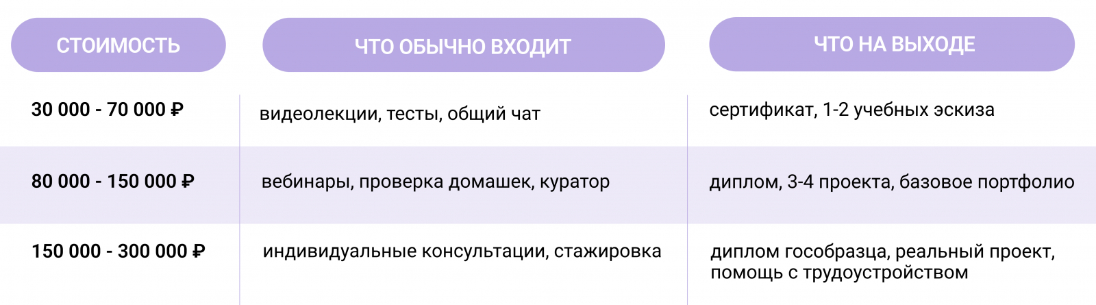 Реальная цена на обучение в школе дизайна интерьера складывается из: