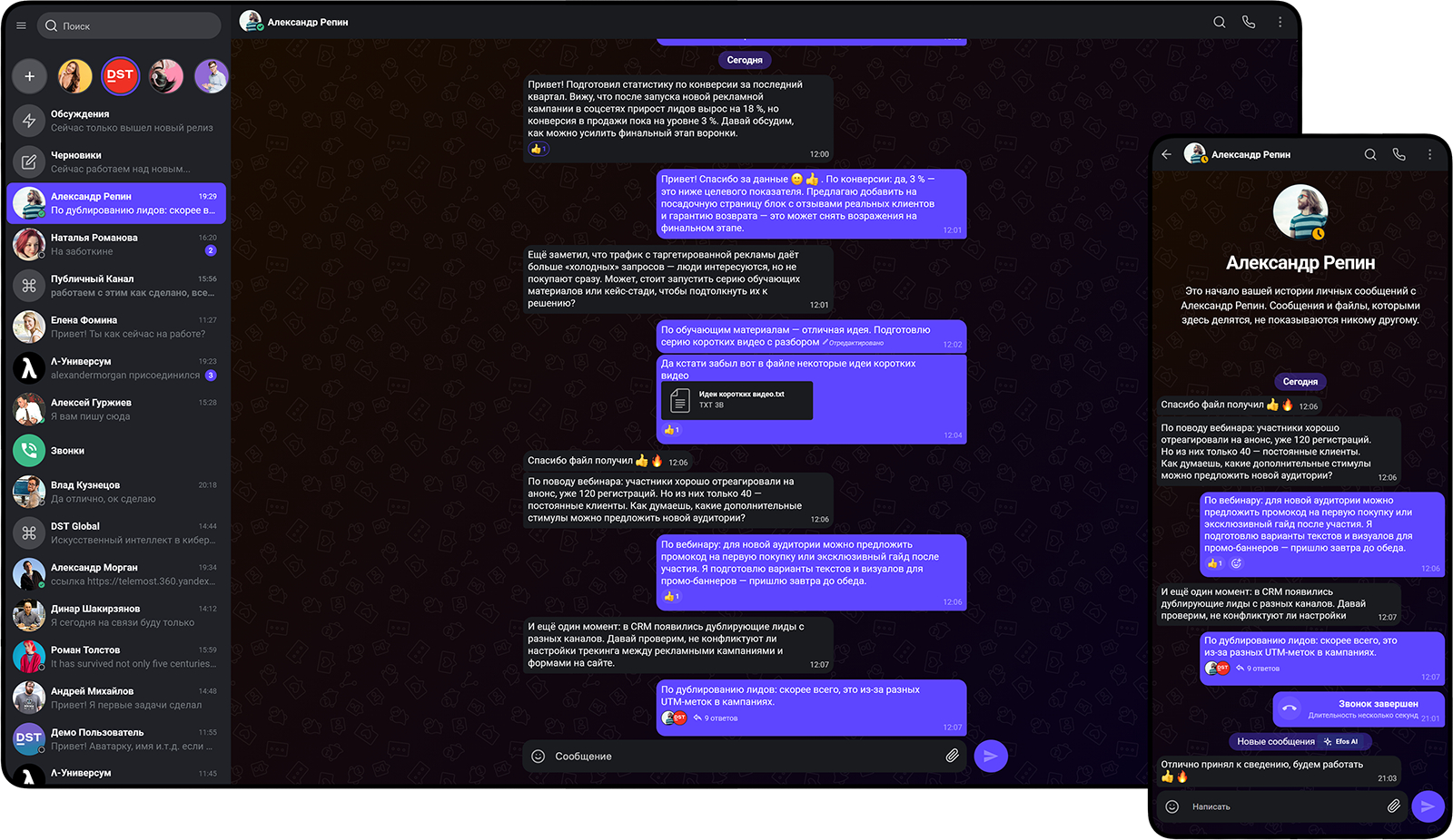 Вы получаете не просто мессенджер. Вы получаете полноценную платформу коммуникаций, которая включает в себя: