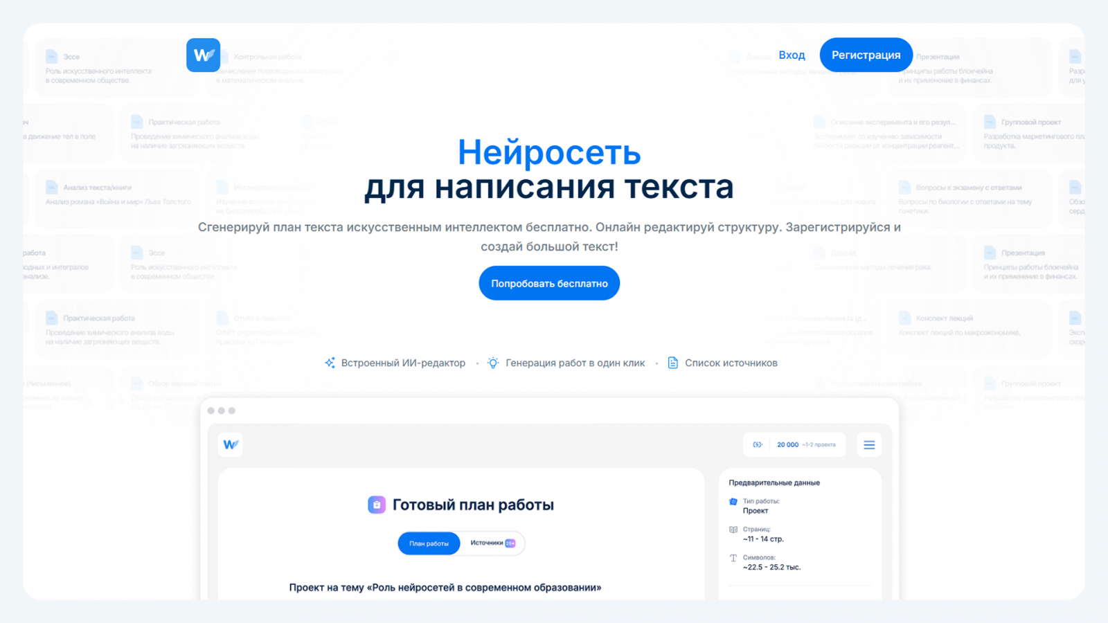 У платформы широкие возможности для генерации докладов, эссе, статей, курсовых и других научных работ. Сервис помогает создавать уникальные материалы высокого качества.