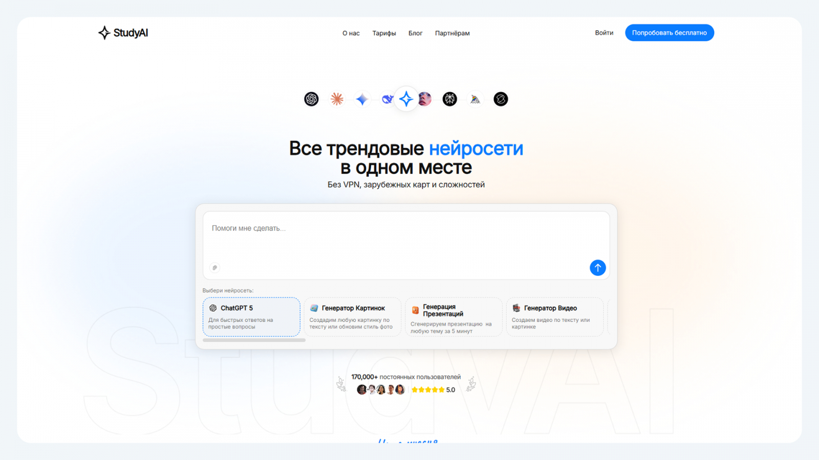 Знакомство с ИИ мы рекомендуем начать с sova.help — оптимального варианта для тех, кому важны экономия и эффективность. Нужен один реферат? Разовая оплата обойдется дешевле конкурентов. Учитесь регулярно? Подписка от 299 ₽/мес. с безлимитным решением задач по тексту и фото — идеальное решение.