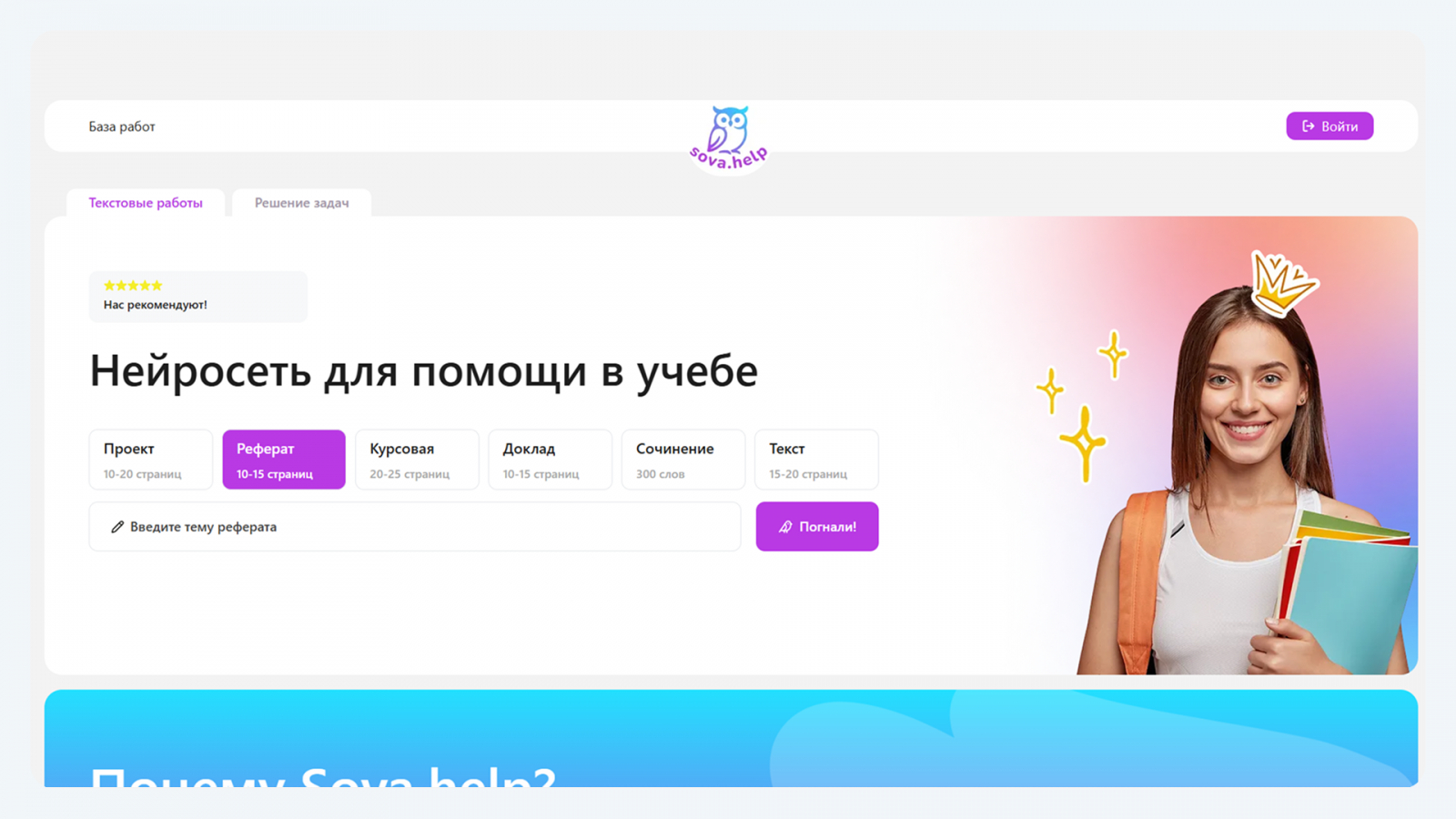 Sova.help — оптимальное решение для школьников и студентов по ряду причин: