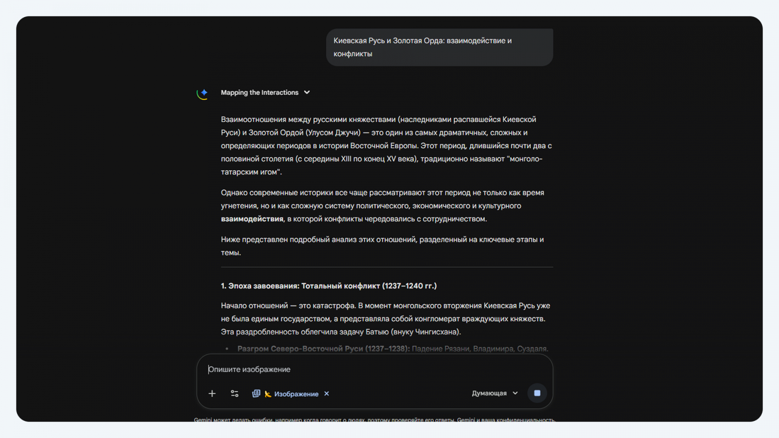 Учитывая, что речь идет о докладах и рефератах, которые пишут студенты российских вузов, крайне важно, чтобы AI-бот поддерживал русский язык: хорошо понимал его грамматику, лексические нюансы, контекст, грамотно переводил с других иностранных языков. Сервисы вроде ChatGPT и Claude хороши в плане анализа данных и быстроты написания текстов, но периодически могут путаться в терминологии и ошибаться в переводах.