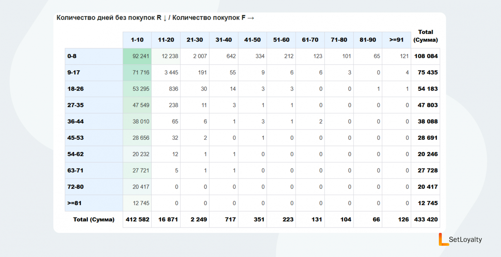 Через таблицы и перцентили легко понять, сколько клиентов в каждой категории и где проходят границы именно для вашей сети.