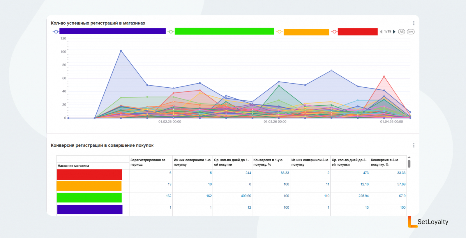 Плюс — теперь можно отслеживать регистрации в разрезе каждого магазина.