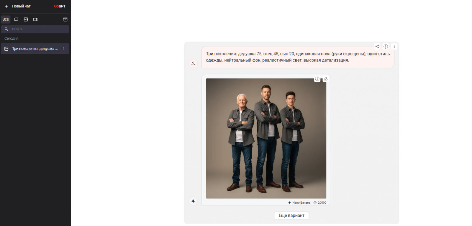 Тренд на семейные портретные фотографии взорвал соцсети, а повторить его очень просто — нужно лишь задать нейросети правильный промт для портрета поколений. С его помощью ИИ сгенерирует изображение с вашими предками: от самых младших до старейших.