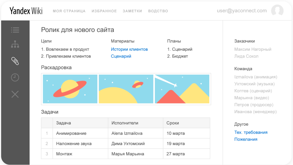 Yandex Wiki — вики-система для создания и хранения информации для сотрудников.