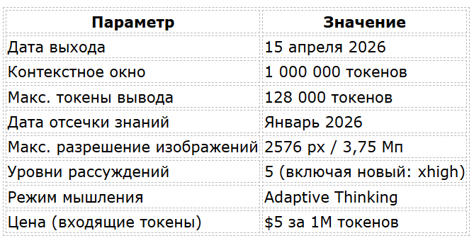 15 апреля 2026 года компания Anthropic выпустила Claude Opus 4.7 — новую версию своего флагманского ИИ-ассистента. Это не косметическое обновление: модель получила принципиально улучшенное зрение, переработанный механизм рассуждений, более точное следование инструкциям и расширенную дату знаний до января 2026 года.
