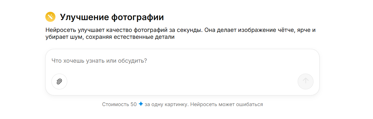 Improve Photo — это специализированная нейросеть для улучшения качества фото. Она не рисует с нуля, а делает магию с тем, что у вас уже есть. Размытые, старые, пиксельные снимки получают вторую жизнь.
