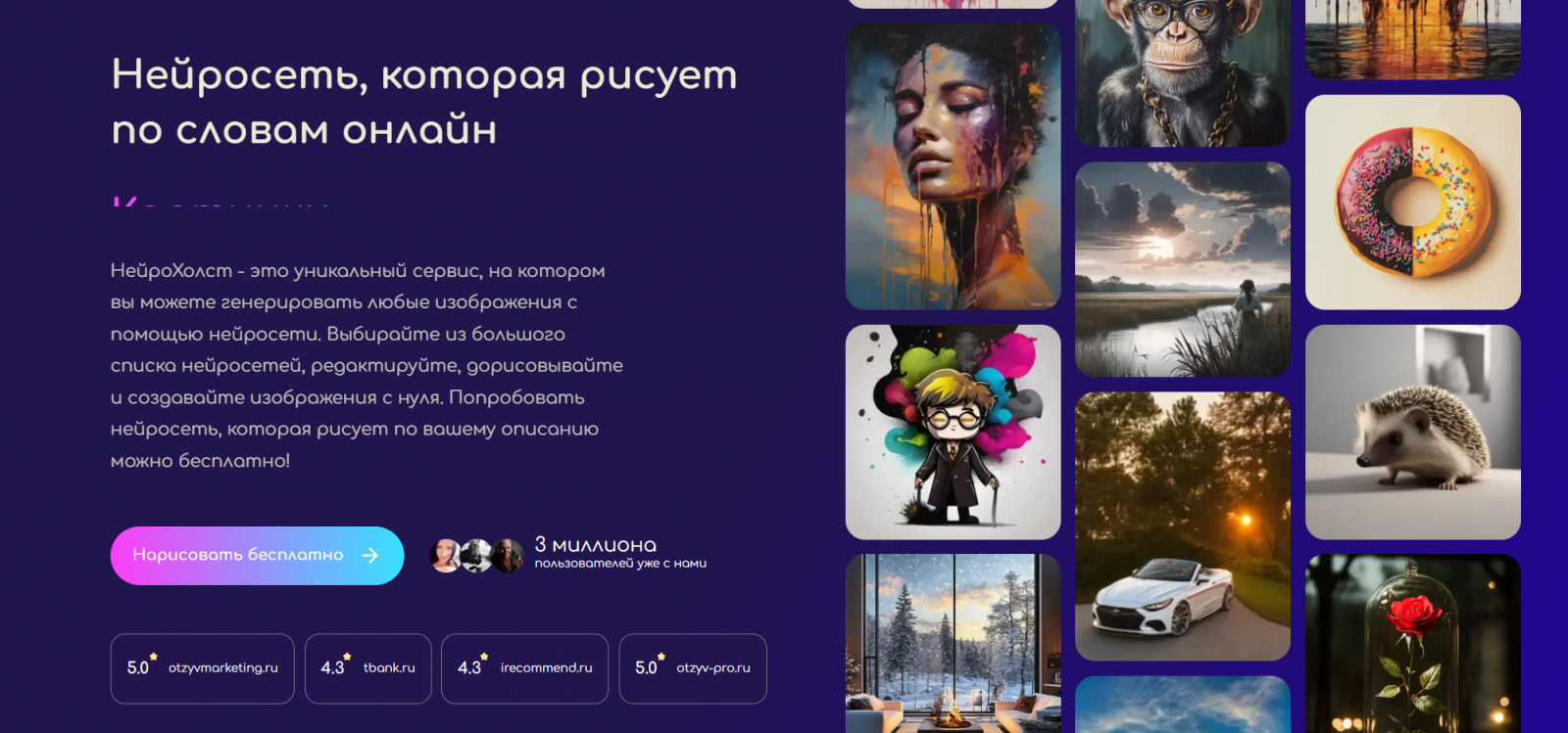 Nplod — еще один представитель доступных сервисов, нацеленных на массового пользователя. Если вам нужна нейросеть для создания картинок без лишних кнопок и настроек, стоит обратить внимание.