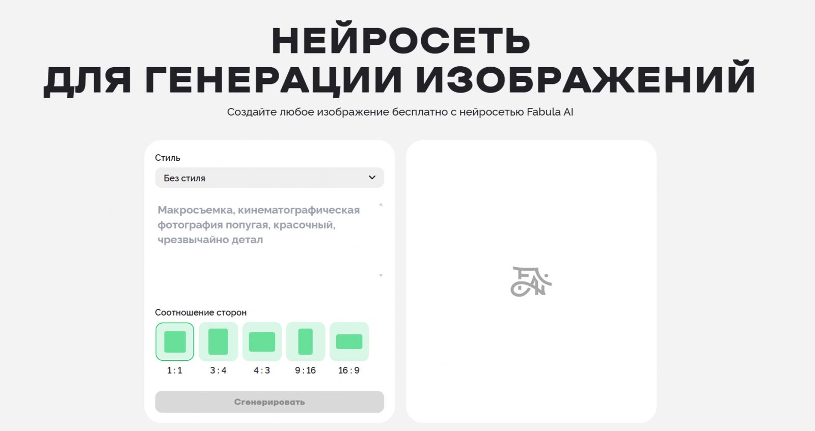 Fabula AI — это инструмент для художников и энтузиастов. Платформа предлагает мощный генератор фото на нейросети с уклоном в художественные стили и высокую детализацию.