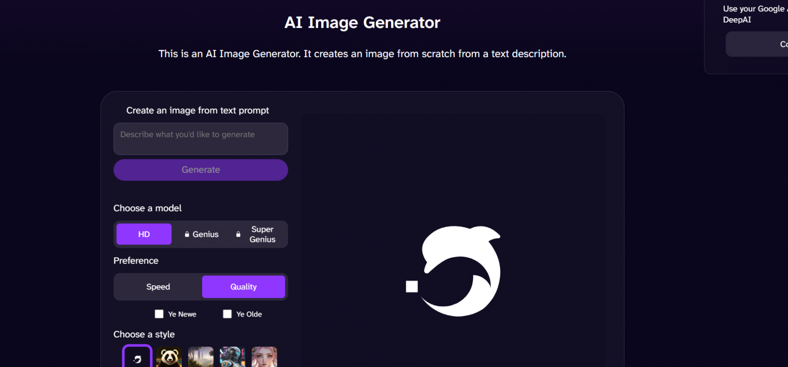 DeepAI — это "рабочая лошадка". Он может не выдавать качество уровня Midjourney v6, но для генерации идей, референсов и абстракций подходит отлично. Хороший вариант для тех, кто ищет бесплатный ИИ для создания картинок для тестов.