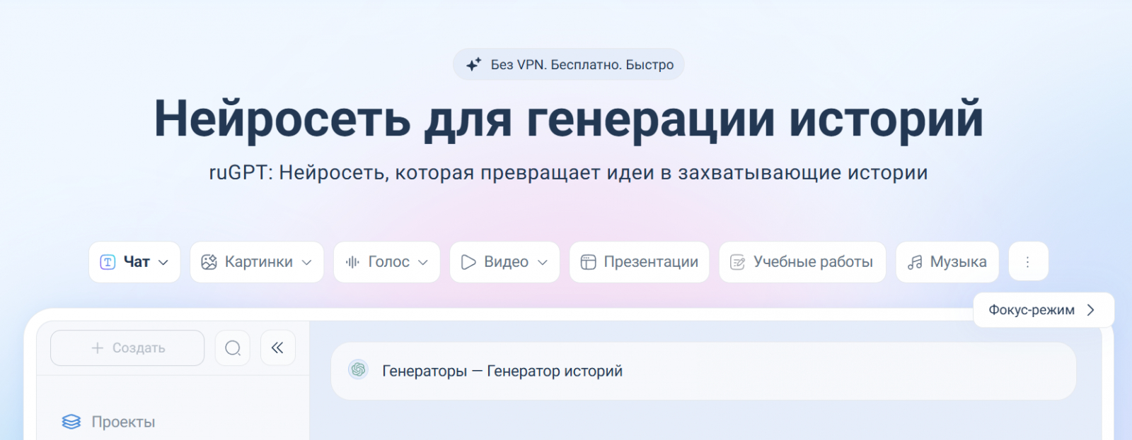 RuGPT — Отечественная разработка, заточенная под наш культурный код. Это отличная нейросеть для написания историй, где важен локальный колорит, узнаваемые реалии российских городов и специфика юмора.