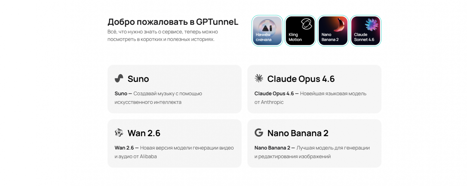 GPTunnel позиционируется как фундаментальная база всех нейросетей с фокусом на глубокие настройки и интеграции. Если ваша задача — провести A/B тестирование кода между GPT-4o и Claude 3.5 Opus или внедрить искусственный интеллект в собственный продукт, этот сервис станет лучшим выбором. Главный плюс площадки — честная модель оплаты Pay-as-you-go: вы платите исключительно за потраченные токены, без абонентской платы и переплат за бренд.