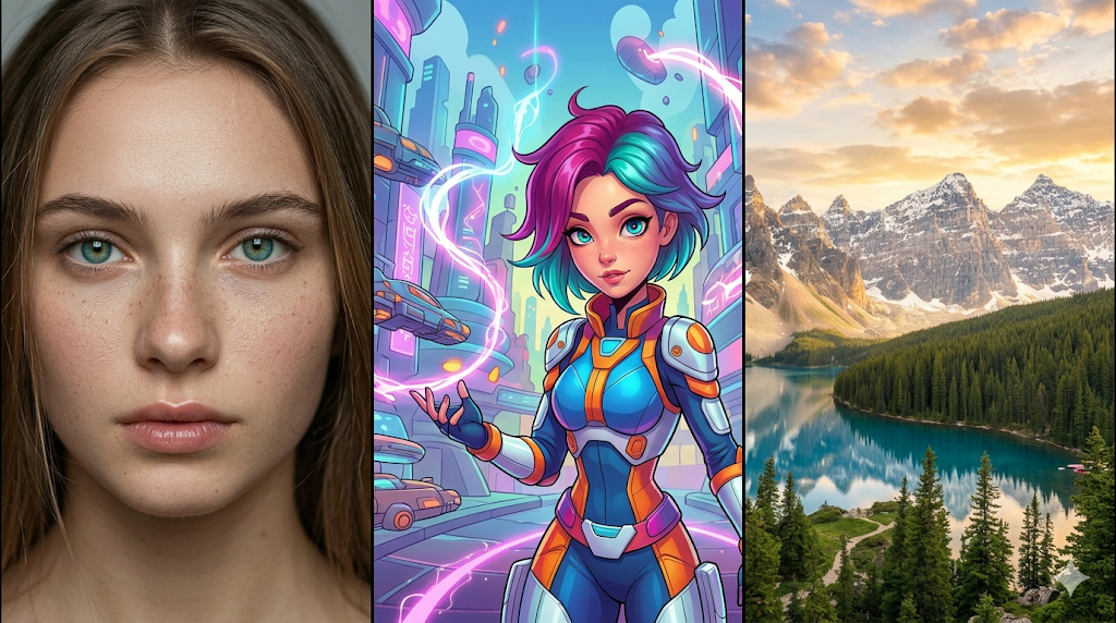 Для идеального результата сначала создайте базовый портрет персонажа, а затем используйте его как референс для последующих сцен. Эта нейросеть для генерации изображений по фото работает филигранно: загружаете исходник, описываете новое окружение, и алгоритм переносит героя в нужную среду. Модель отлично воспринимает английские термины из фотографии (например, "f/1.8", "bokeh", "rim light"), поэтому не стесняйтесь использовать профессиональный сленг для управления глубиной резкости.