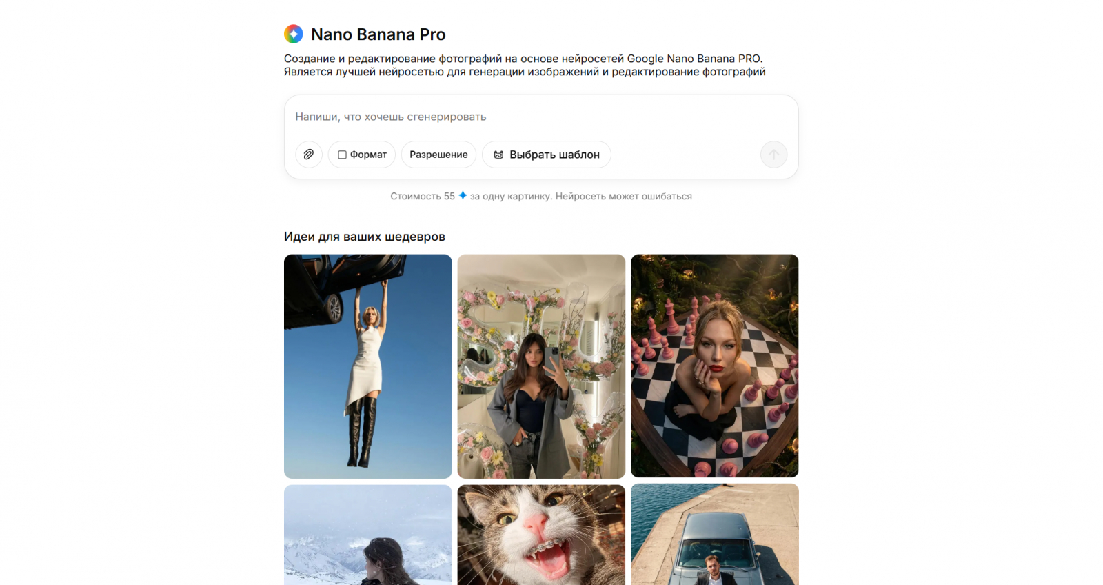 - Nano Banana Pro: Максимальная простота. Создание изображений происходит прямо в браузере и занимает считанные секунды.