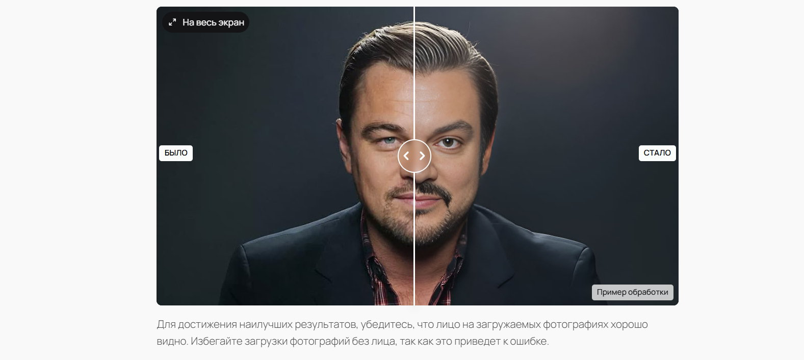 Сервис лучше всего работает с фотографиями, где люди смотрят прямо в объектив камеры. Профильные снимки могут вызывать незначительные искажения геометрии носа или линии подбородка. Строгой модерации нет, но система может отказаться обрабатывать слишком темные или сильно размытые кадры.