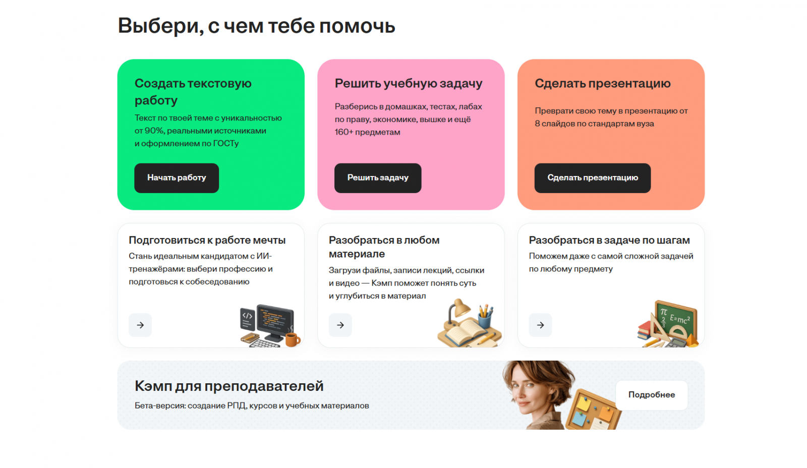 С более чем 2 миллионами пользователей и свыше 250 000 успешно сданных текстовых исследований, Кэмп закрывает большинство страхов современного студента. Если вам нужна нейросеть для написания дипломной работы, которая не подведет с фактами, стоит присмотреться к этому сервису.