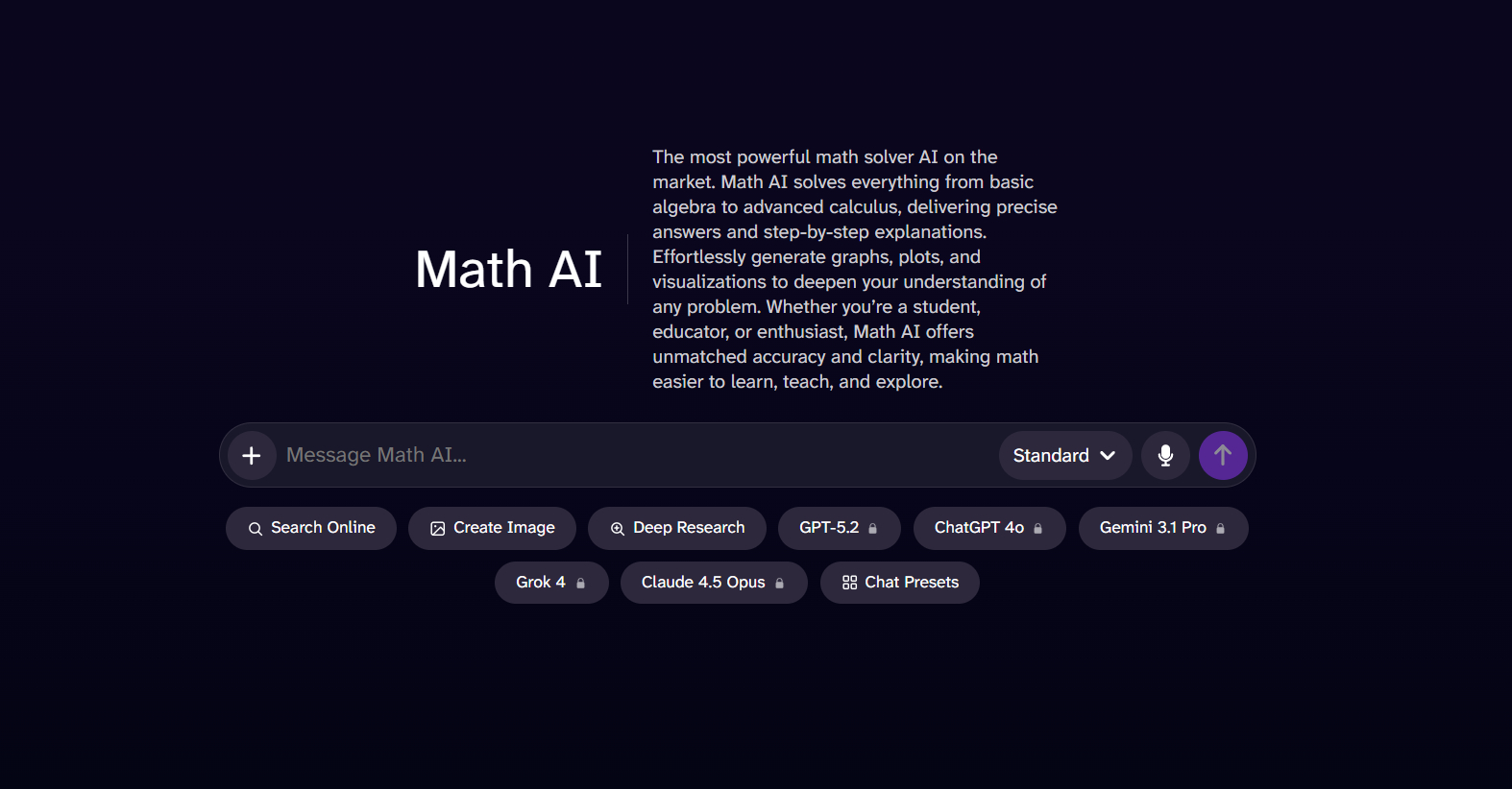 Специализированный онлайн-инструмент, созданный исключительно для служения царице наук. Данный ии для решения математики совершенно не отвлекается на написание стихов или генерацию креативных картинок, концентрируя все свои нейронные мощности исключительно на формулах. Платформа легко "глотает" некачественные снимки исписанных тетрадей и выдает красивый, отформатированный в LaTeX научный ответ.