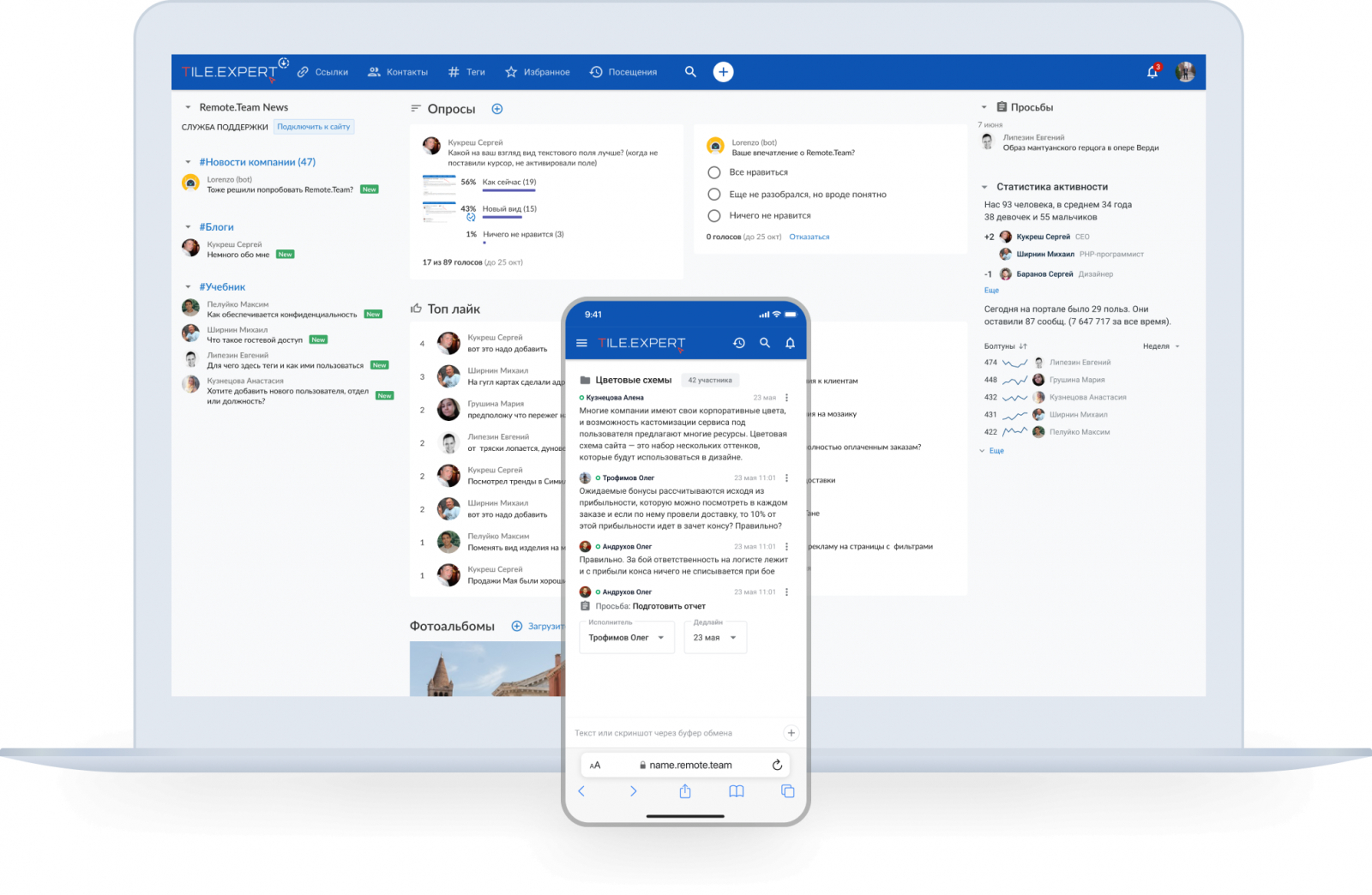 Remote.Team - это простая, защищенная и эффективная система управления задачами и проектами, объединяющая чат, таск-менеджер, аналитику и опросы в одном месте. Она подходит как для небольших команд, так и для более масштабных проектов и помогает: