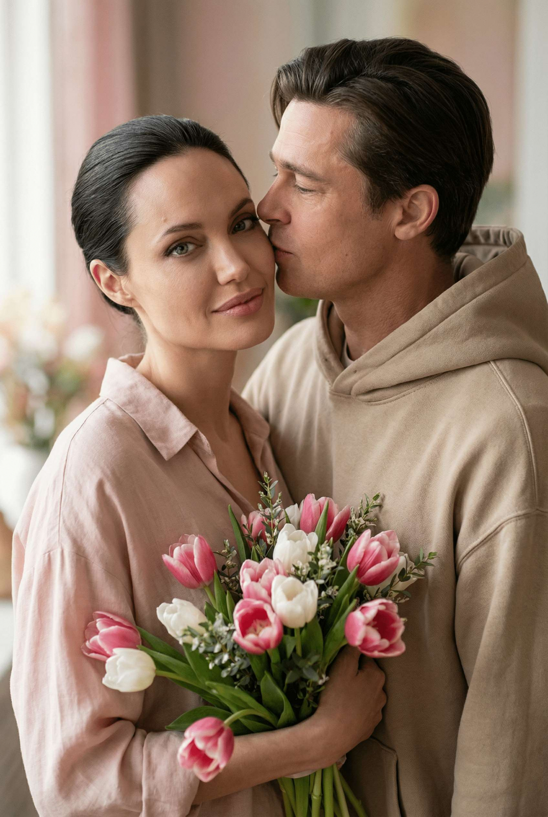 Эта нейросеть понимает сложные промпты: свет, позы, текстуры тканей и весеннюю атмосферу. Плюс, она работает в России через сервис aihere.ru. Результат - серия снимков в 4K, готовых для соцсетей или подарка.