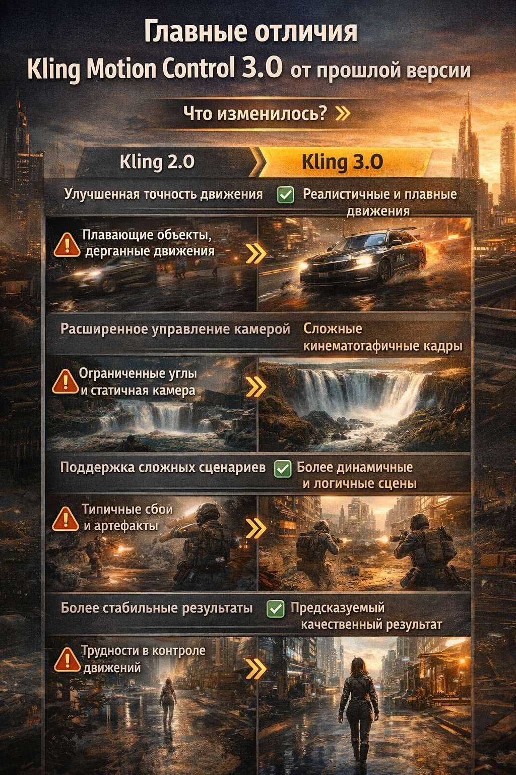 Kling Motion Control 3.0 - это обновленная система управления движением в AI-видео, которая позволяет более точно задавать траектории, поведение объектов и динамику сцены.