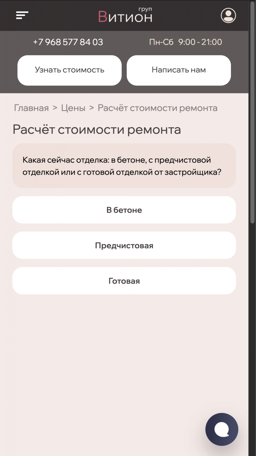 Онлайн-калькулятор. На сайте vition.ru/repair-calc можно самостоятельно рассчитать примерную стоимость ремонта за 30 секунд. Калькулятор определяет стоимость с точностью около 85%.