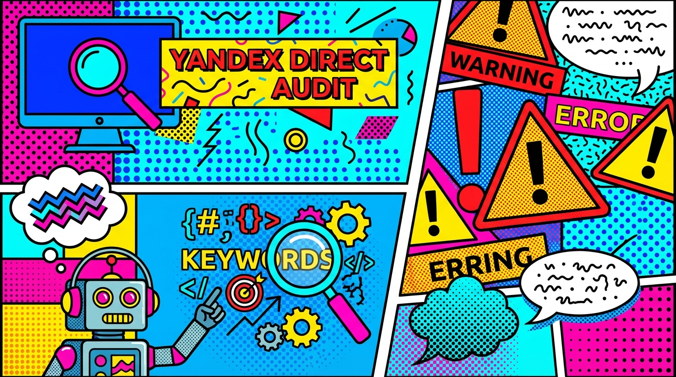 Аудит Яндекс Директ нацелен на устранение пяти групп ошибок: структура кампаний, работа с ключевыми и минус‑словами, настройки ставок и стратегий, качество объявлений, а также технические и аналитические проблемы.