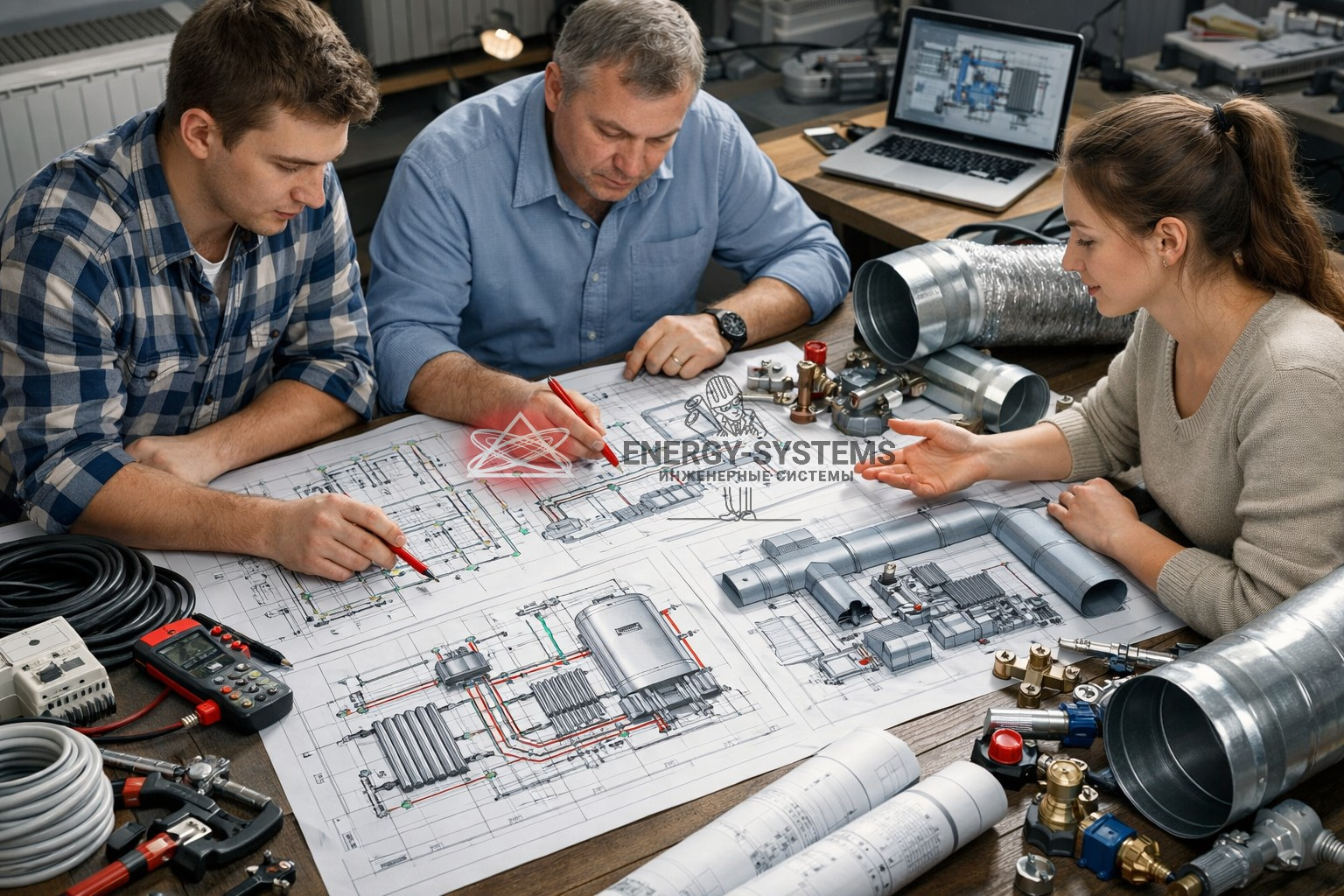• разработку схемы• подбор оборудования• расчет нагрузки• консультации по монтажу