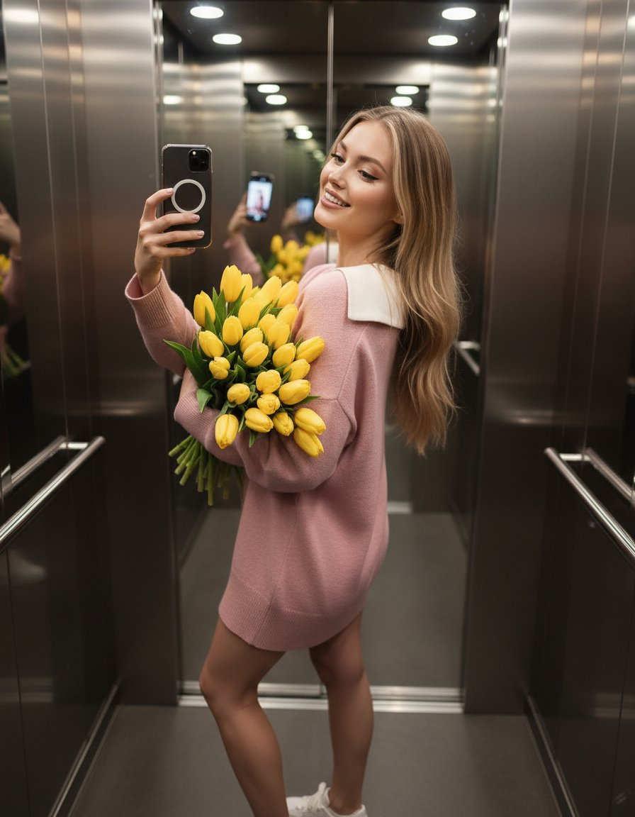 Ниже — концепции и готовые промты для генерации открытки на 8 марта ИИ со своим фото в кинематографическом стиле.