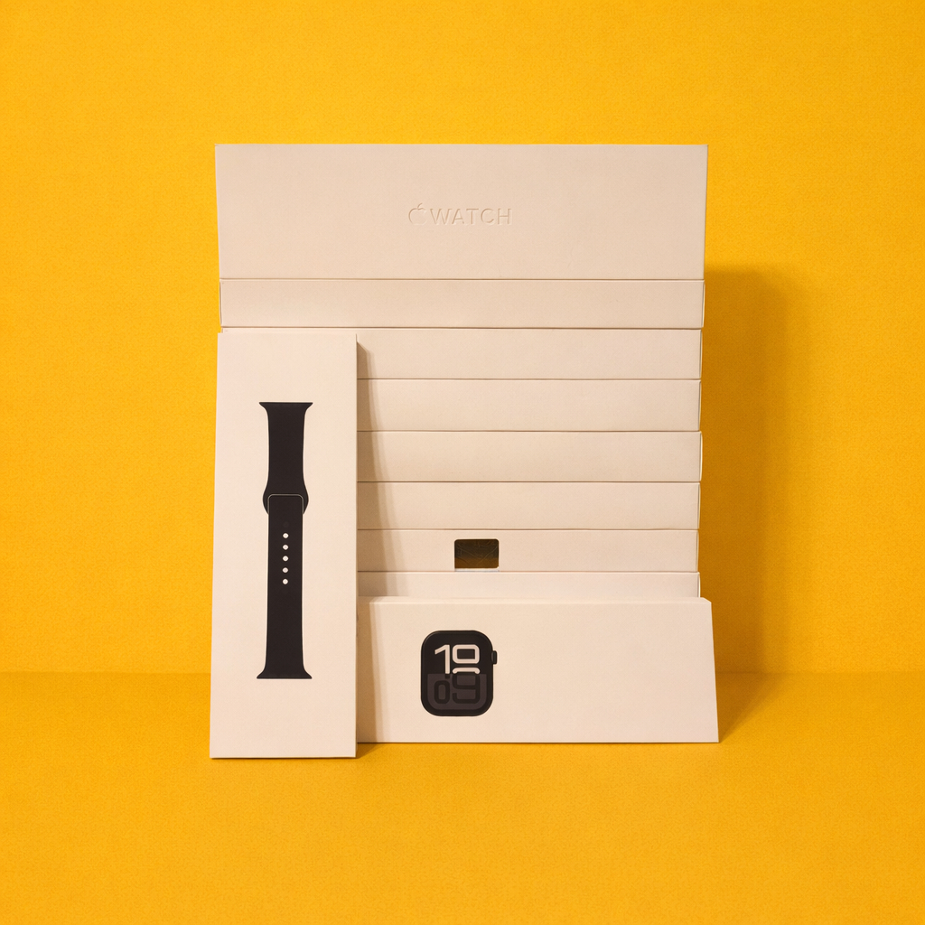 Во время Новогодних праздников мне приходят Apple Watch 11. Поэтому готовим 2 карточки для продвижения. Для этого делаю обычные фото, после чего иду в GPT и прошу подставить желтый фон и форматировать изображение в квадратное, получились живые фото, а не идеально сгенерированные и это плюс.