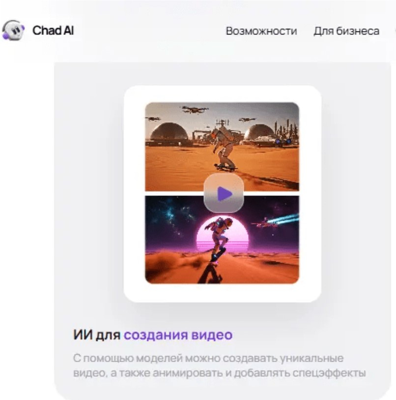 «Chad AI превращает сценарий в живую сцену, а текст — в видеохронику.»