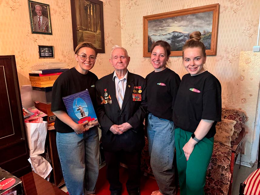 Другой ветеран, к которому мы приезжали — Сергей Романович Сухоруков. Часть детства он провеёл в блокадном Ленинграде, мальчиком помогал тушить зажигательные снаряды. Из девяти человек в семье шестерых не стало, Сергей с братом оказались в детском доме, откуда их эвакуировали на катерах. И в 1944 году его усыновили. Сейчас Сергей Романович живет в Москве, это 130 километров от Можайска, — но мы решили приехать и помочь. Одна из наших сотрудниц, Катя — она раньше занималась в театральной студии — читала ему стихи военных лет, он даже прослезился.