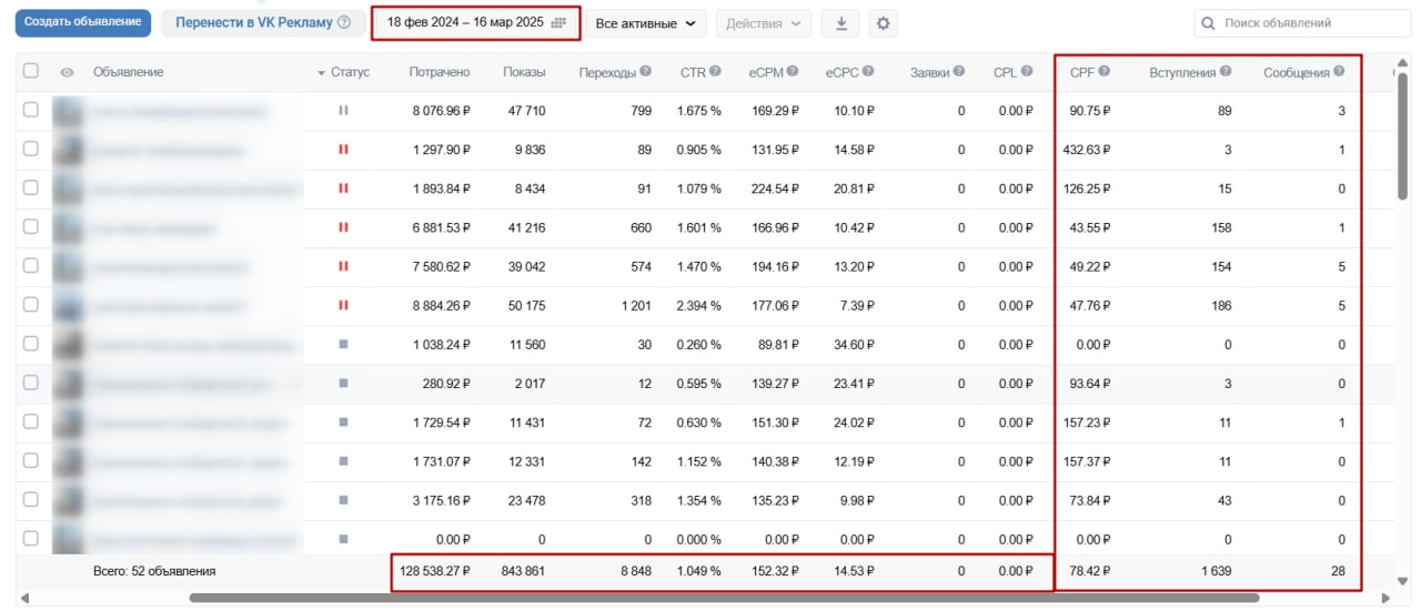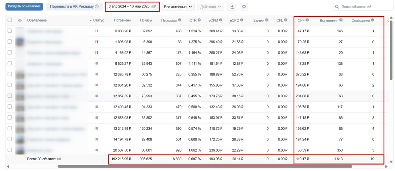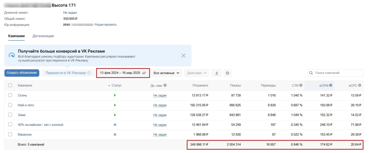 На данный момент реклама приостановлена, потому что клиент задумался о том, чтобы продать бизнес (возможно, рассматривал базу как инвесторский проект). Но есть вероятность, что возобновимся, планы туманны почему-то.