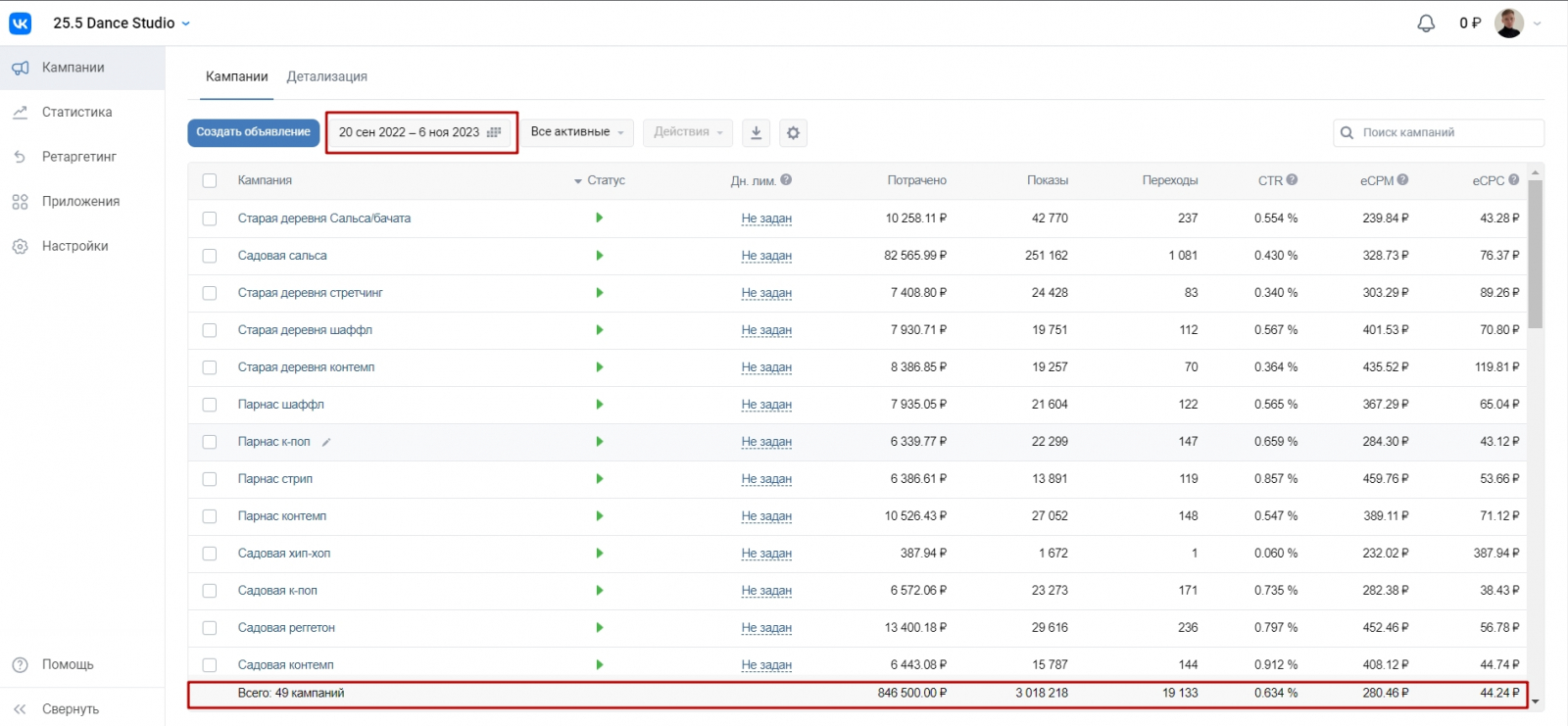 В этом кейсе я рассказал, как прошел первый год моей работы с танцевальной студией 25.5 в СПб, как мы за год привлекли 2300 заявок по цене в среднем 380 + набрали около 6000 подписчиков в 3 филиала студии. Кейс выложил 14 ноября 2023 года.
